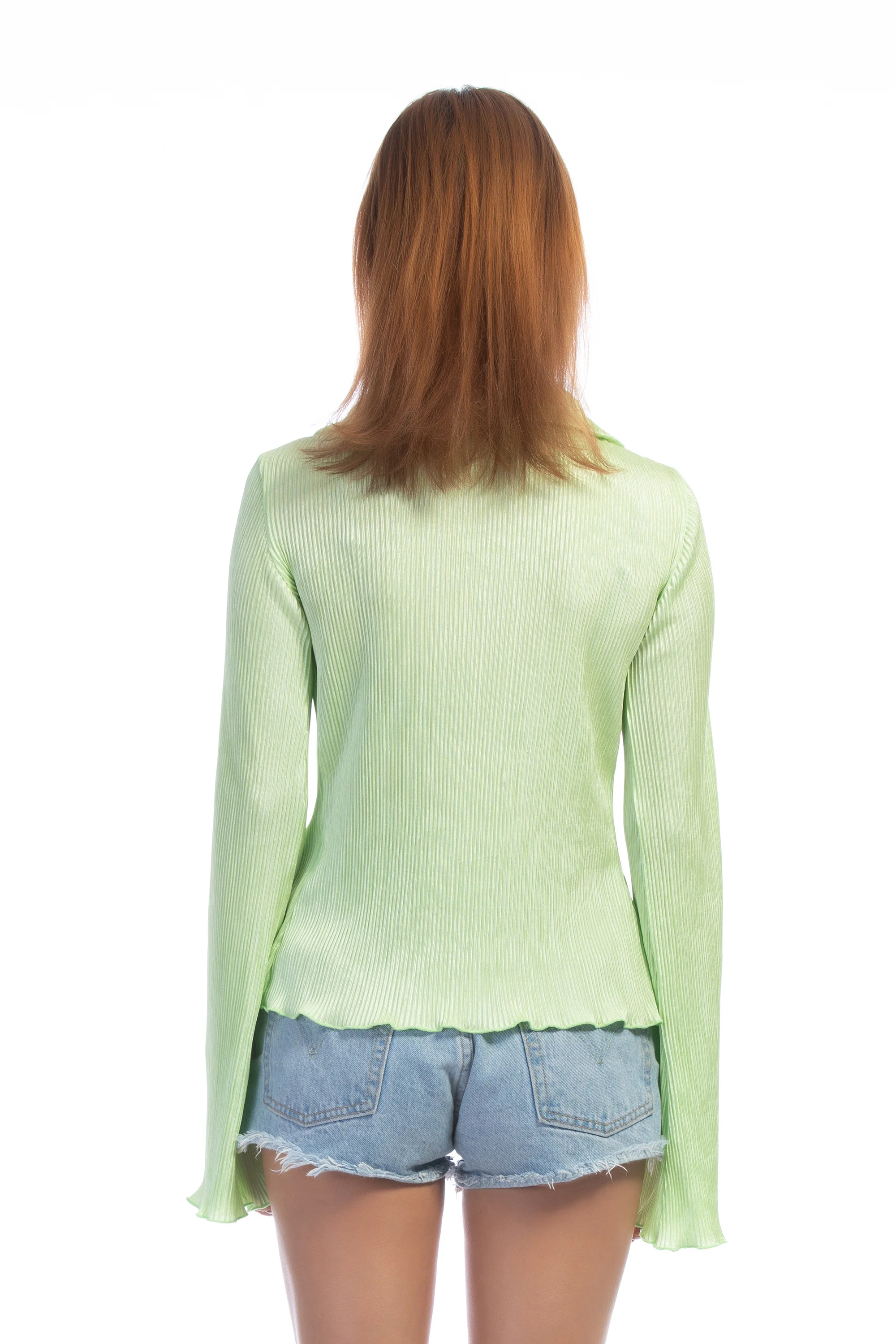 Fluorescent Green Silk Shirt Long Sleeve Top