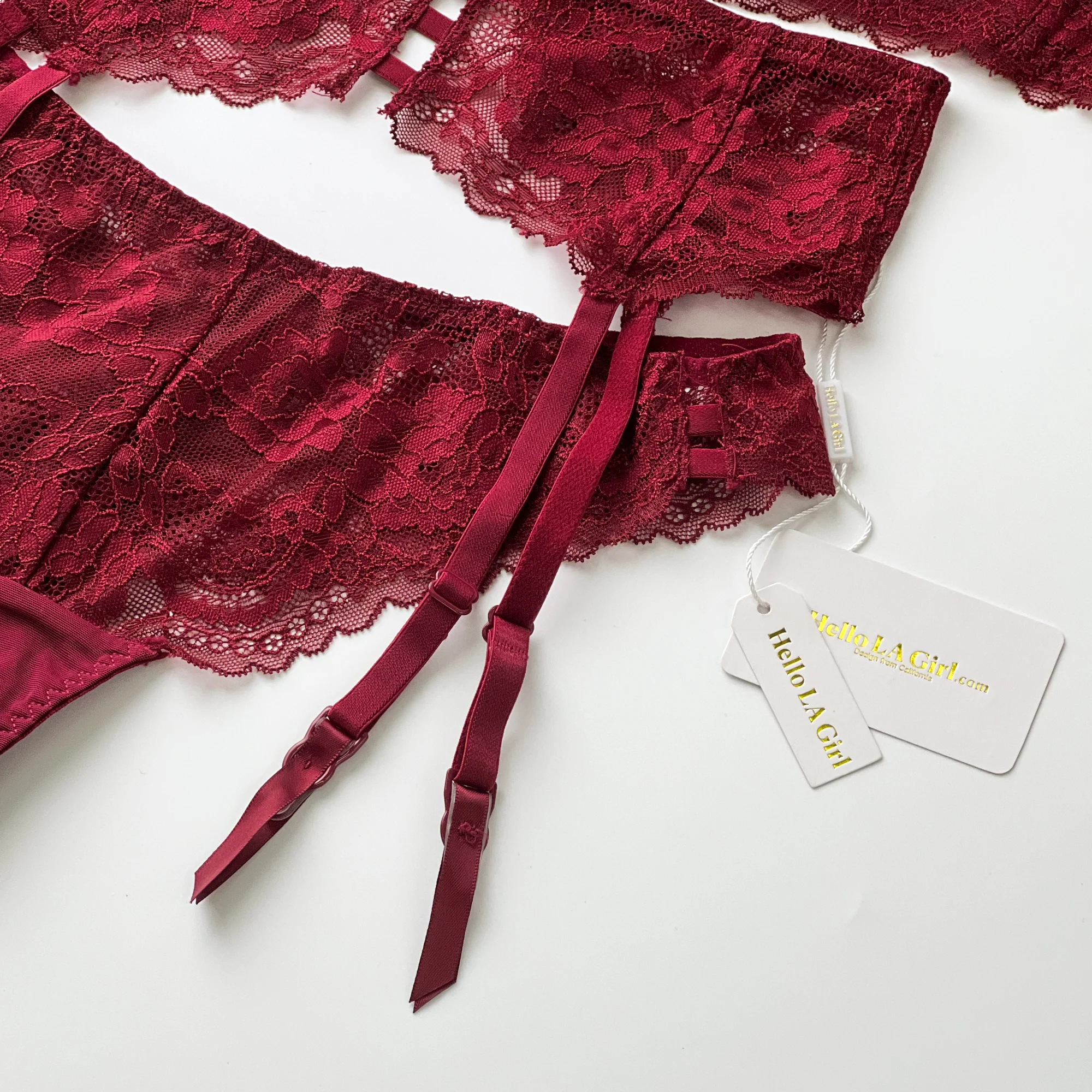 Red Floral Lace Trim Garter Belt Lingerie
